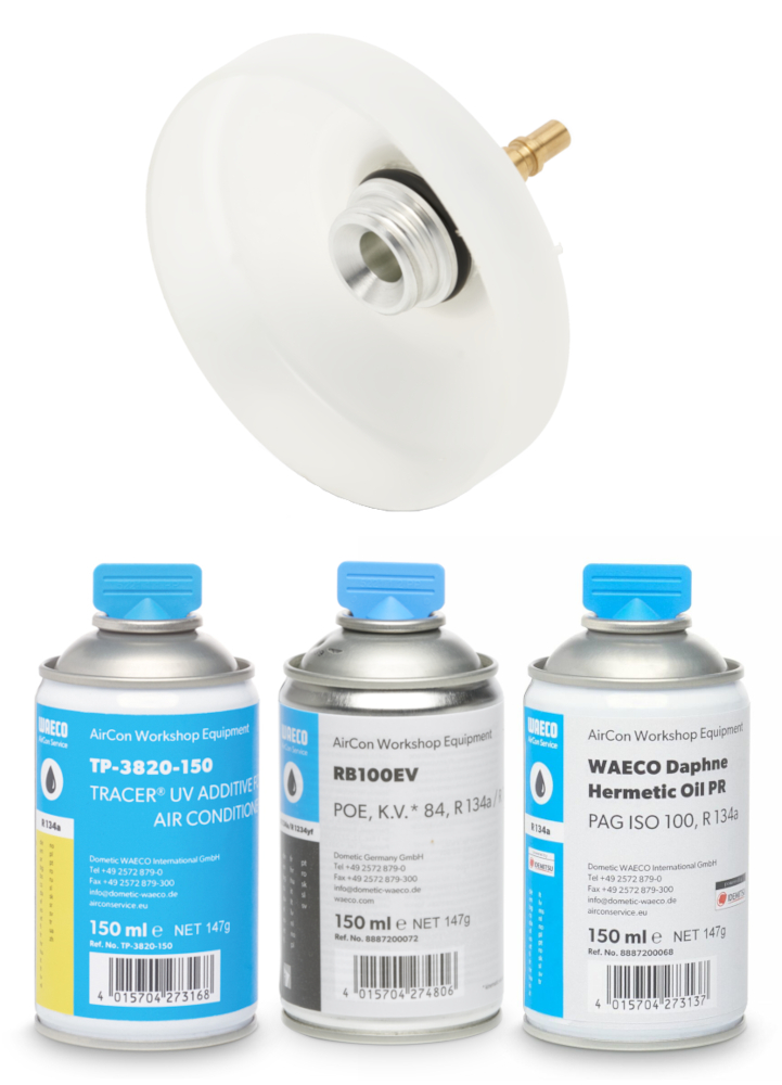 Dieses Zufuhrsystem für Frischöl und UV-Additive stellt eine hocheffiziente Innovation dar und kommt in dem neuesten Sortiment an hochwertigen Servicegeräten zum Einsatz. Einer der größten Vorteile des Zufuhrsystems besteht darin, dass es Feuchtigkeit und damit potentielle Schäden von der Klimaanlage fern hält. Dank dieser Auswahl an professionellen Ölsystem-Adaptern können Sie das feuchtigkeitsfreie Zufuhrsystem ab sofort auch für Klimaservicestationen anderer Hersteller wie Robinair und Ecotechnics verwenden.