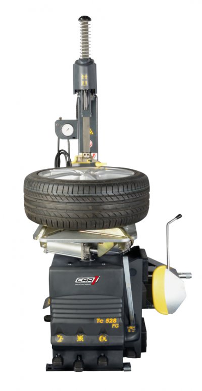 Automatische Reifenmontiermaschine mit 2 Geschwindigkeitsstufen für PKW- und Motorrad-Reifen. Geschwindigkeiten einstellbar über Wendeschalter, 400 V.