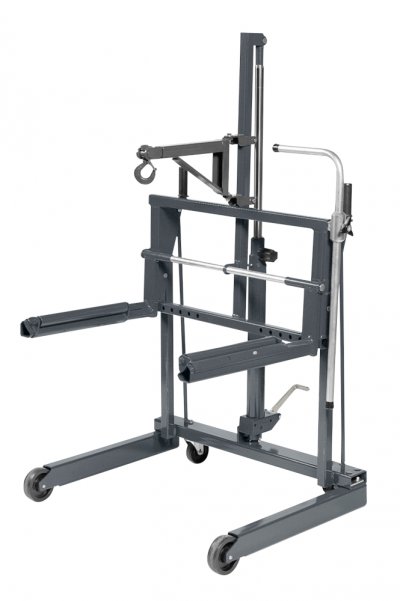Parallele Beine ermöglichen das Umfahren von EURO-Paletten. Mit dem optionalen flexiblen und schwenkbaren Kran WTK zum Anheben von Bremsenausrüstung (Trommeln, Radnaben, Kaliber usw. bis zu einem Gewicht von 250 kg) erhalten Sie ein Gerät das vielen Anforderungen gerecht wird.